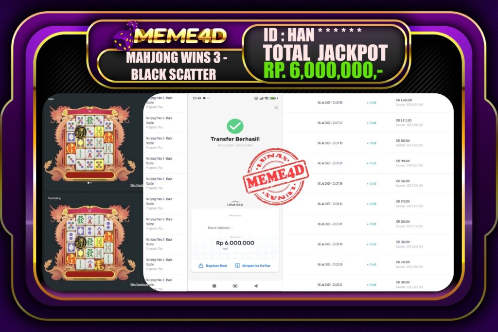 Bagi para pemain judi, tidak ada yang lebih memuaskan daripada melihat bukti nyata kemenangan dari pemain lain. Di Meme4D, banyak cerita inspiratif tentang jackpot yang telah dimenangkan, menunjukkan bahwa keberuntungan bisa datang kepada siapa saja. Setiap jackpot yang diraih bukan hanya hadiah uang, tetapi juga semangat dan motivasi bagi semua pemain untuk terus bermain dan mencoba peruntungan mereka.