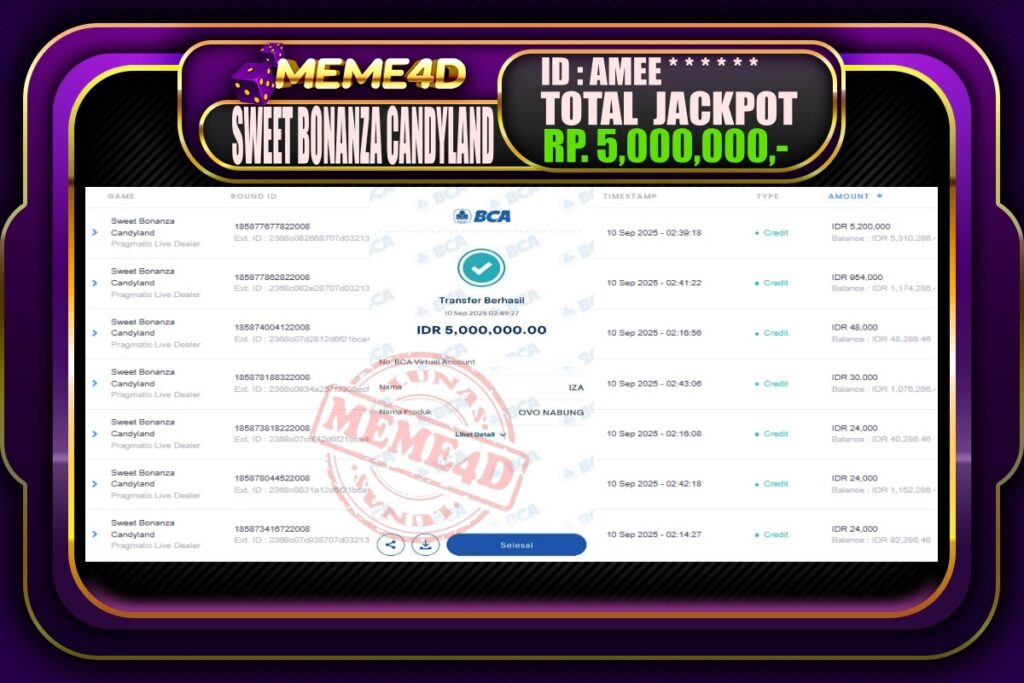 Bagi para pemain judi, tidak ada yang lebih memuaskan daripada melihat bukti nyata kemenangan dari pemain lain. Di Meme4D, banyak cerita inspiratif tentang jackpot yang telah dimenangkan, menunjukkan bahwa keberuntungan bisa datang kepada siapa saja. Setiap jackpot yang diraih bukan hanya hadiah uang, tetapi juga semangat dan motivasi bagi semua pemain untuk terus bermain dan mencoba peruntungan mereka.