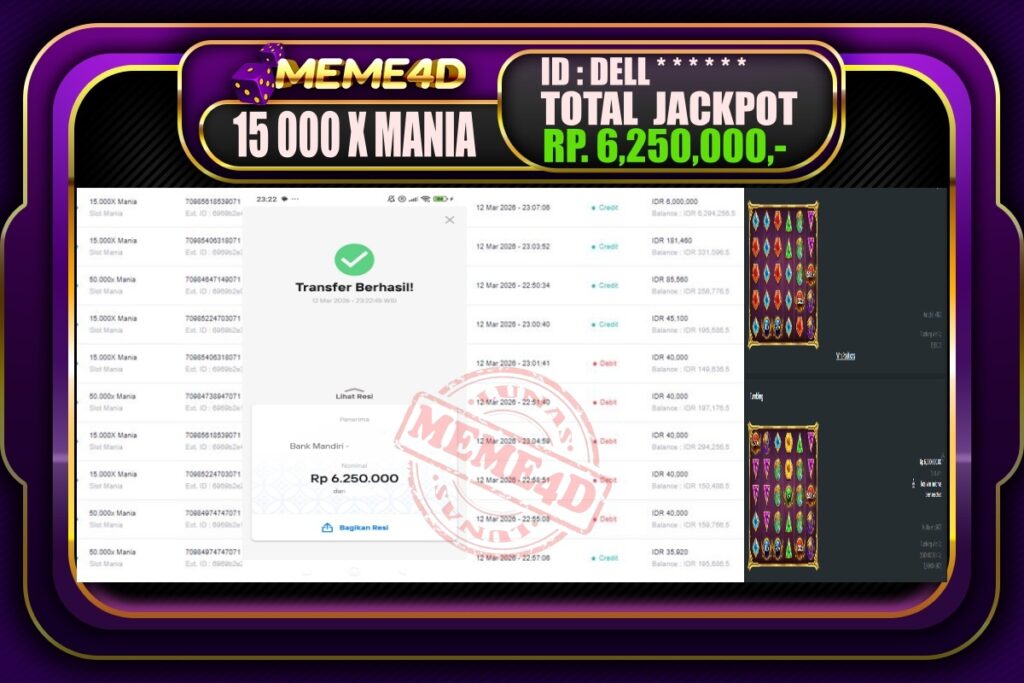 Bagi para pemain judi, tidak ada yang lebih memuaskan daripada melihat bukti nyata kemenangan dari pemain lain. Di Meme4D, banyak cerita inspiratif tentang jackpot yang telah dimenangkan, menunjukkan bahwa keberuntungan bisa datang kepada siapa saja. Setiap jackpot yang diraih bukan hanya hadiah uang, tetapi juga semangat dan motivasi bagi semua pemain untuk terus bermain dan mencoba peruntungan mereka.