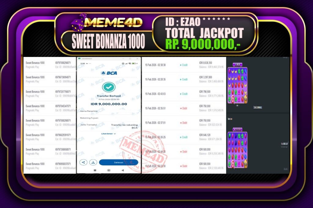 Bukti Jp MEME4D Slot Online 15 February 2026 – MEME4D merupakan situs terpercaya yang selalu membayar berapapun kemenangan semua pemain nya.