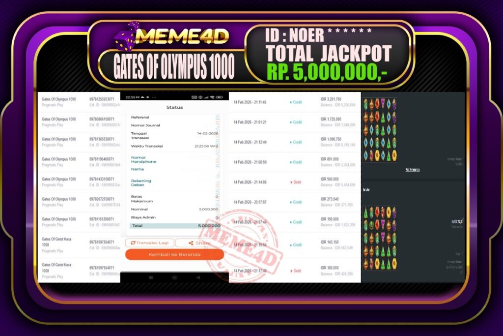 Bagi para pemain judi, tidak ada yang lebih memuaskan daripada melihat bukti nyata kemenangan dari pemain lain. Di Meme4D, banyak cerita inspiratif tentang jackpot yang telah dimenangkan, menunjukkan bahwa keberuntungan bisa datang kepada siapa saja. Setiap jackpot yang diraih bukan hanya hadiah uang, tetapi juga semangat dan motivasi bagi semua pemain untuk terus bermain dan mencoba peruntungan mereka.