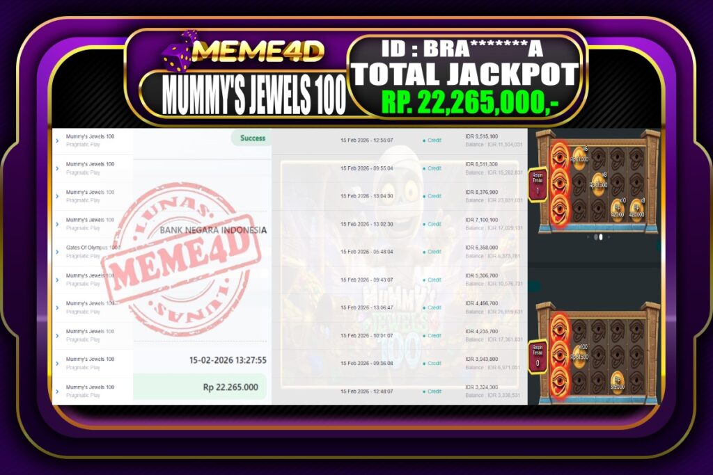 Bukti Jp MEME4D Slot Online 15 February 2026 – MEME4D merupakan situs terpercaya yang selalu membayar berapapun kemenangan semua pemain nya.
