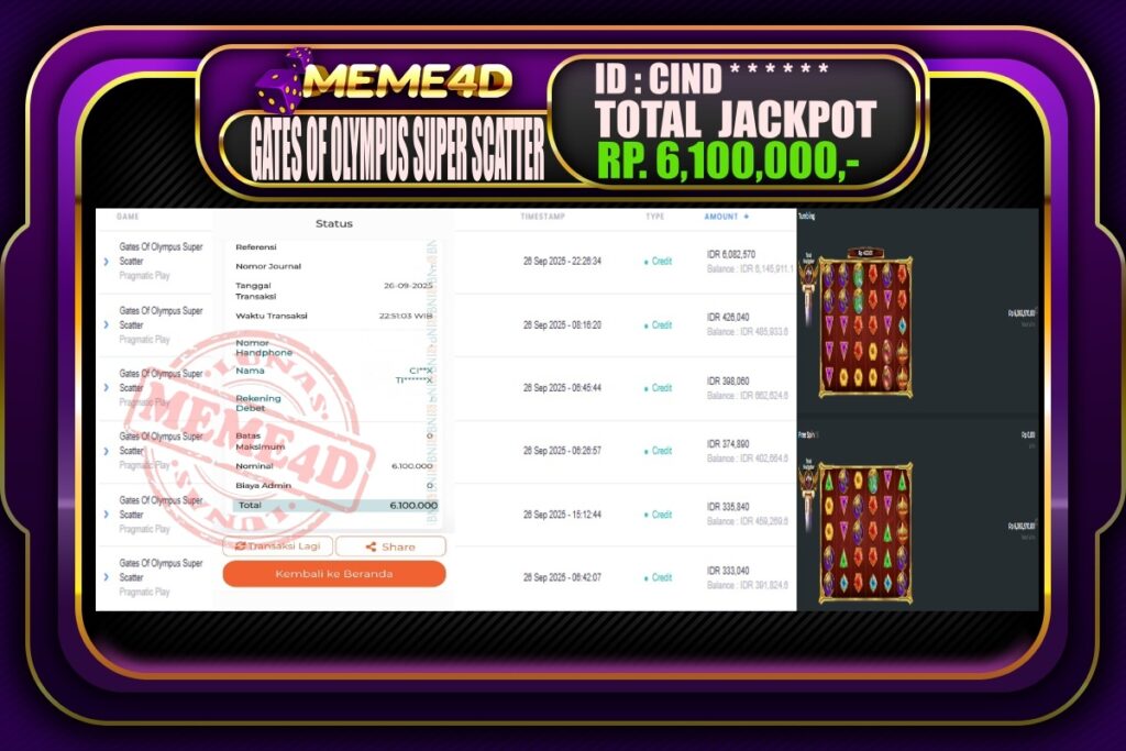 Bukti Jp MEME4D Slot Online 27 September 2025– MEME 4D merupakan situs terpercaya yang selalu membayar berapapun kemenangan semua pemain nya.