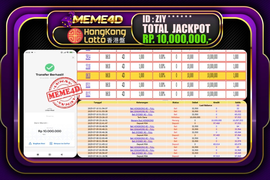 Bukti Jp MEME4D Togel Online 10 Juli 2025