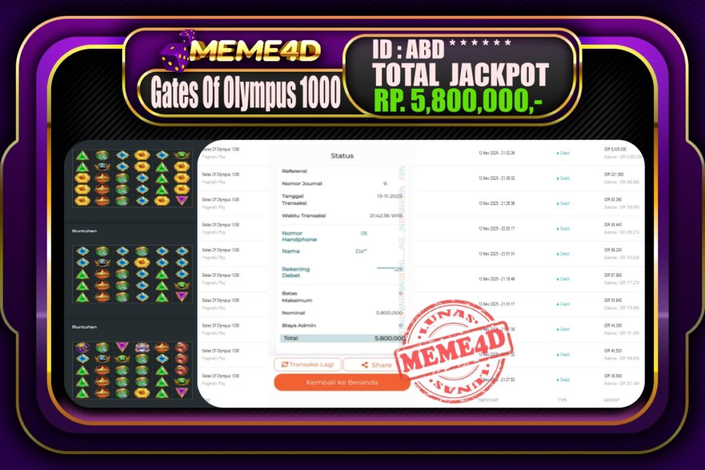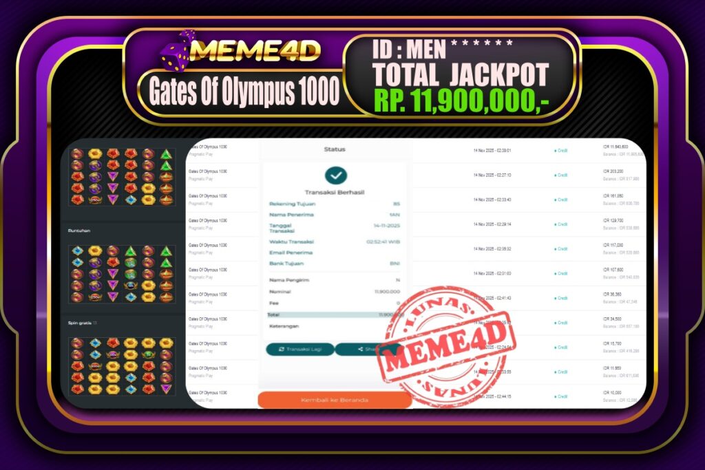 Bukti Jp MEME4D Slot Online 14 November 2025- MEME 4D merupakan situs terpercaya yang selalu membayar berapapun kemenangan semua pemain nya.