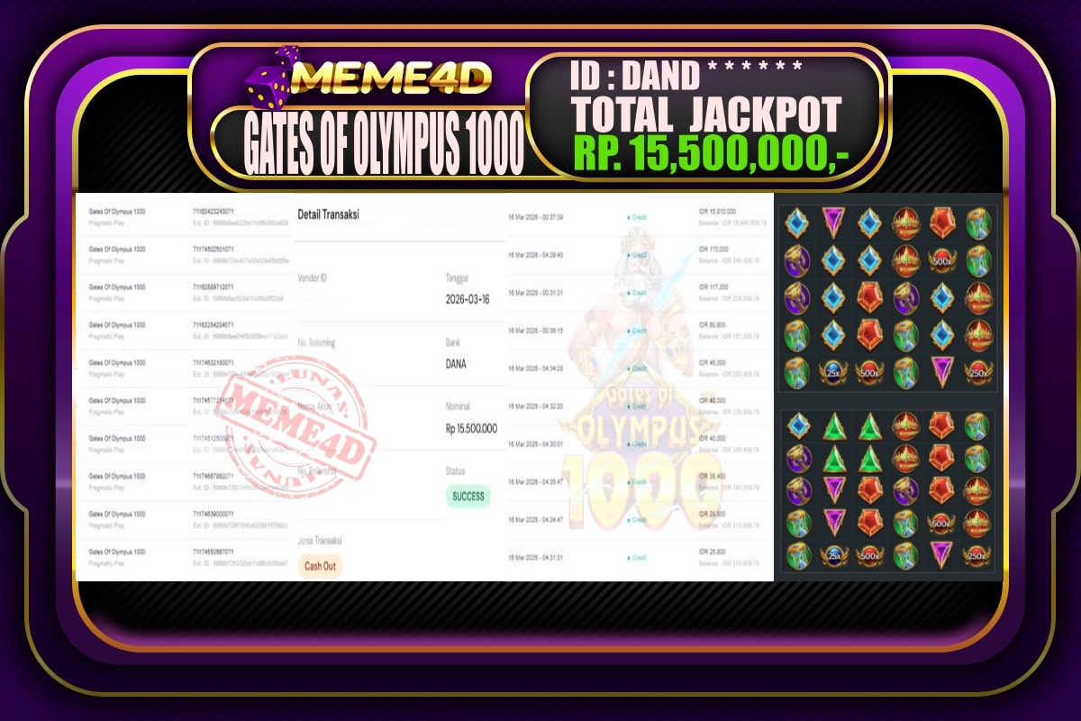 Bukti Jp MEME4D Slot Online 16 March 2026 – MEME4D merupakan situs terpercaya yang selalu membayar berapapun kemenangan semua pemain nya.