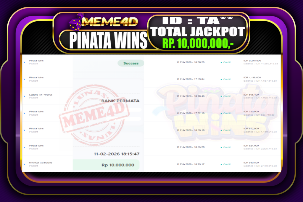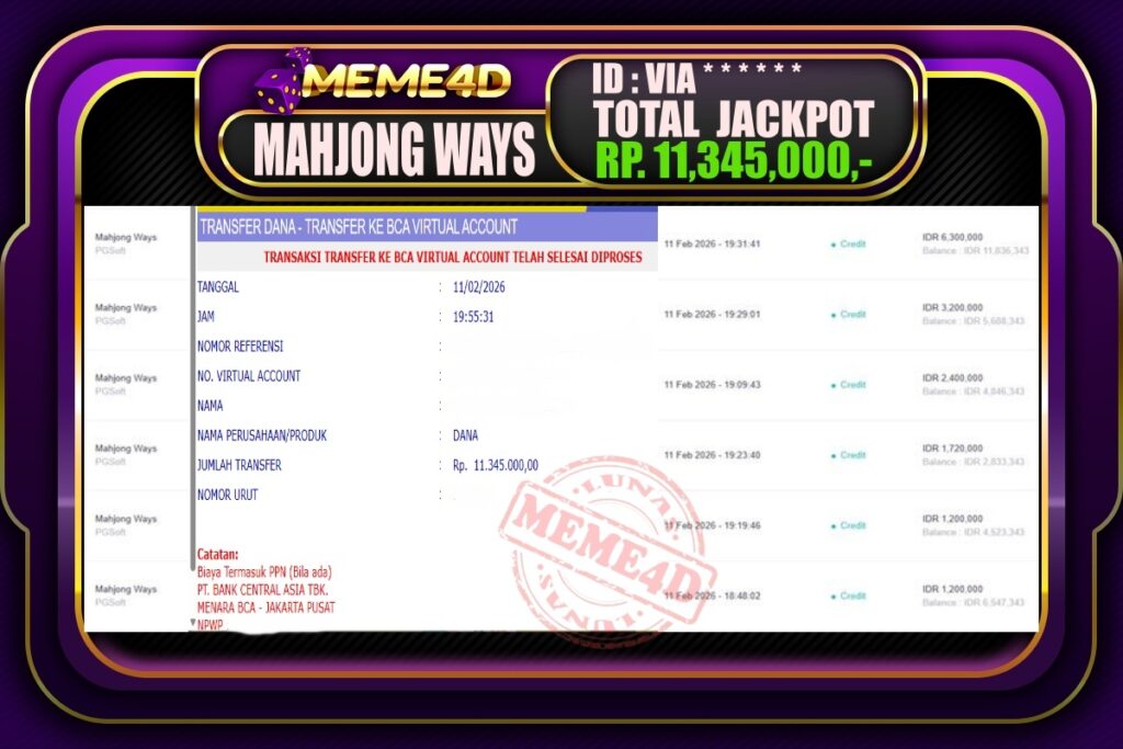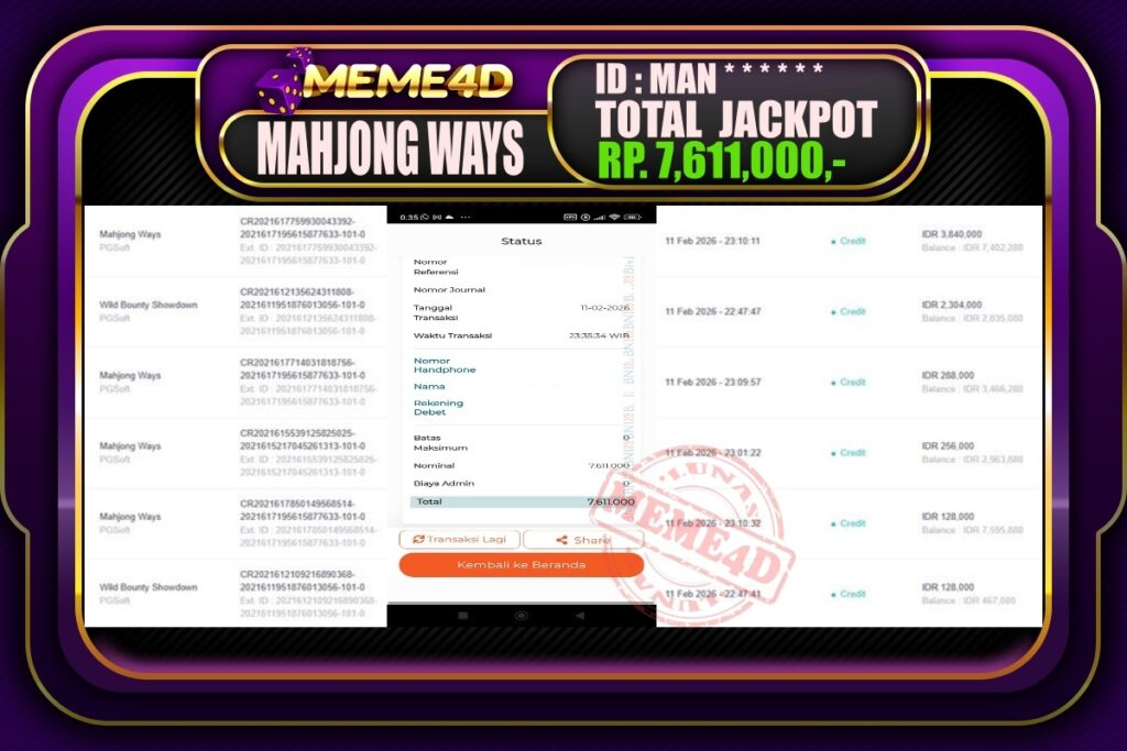 Bukti Jp MEME4D Slot Online 11 February 2026 – MEME4D merupakan situs terpercaya yang selalu membayar berapapun kemenangan semua pemain nya.