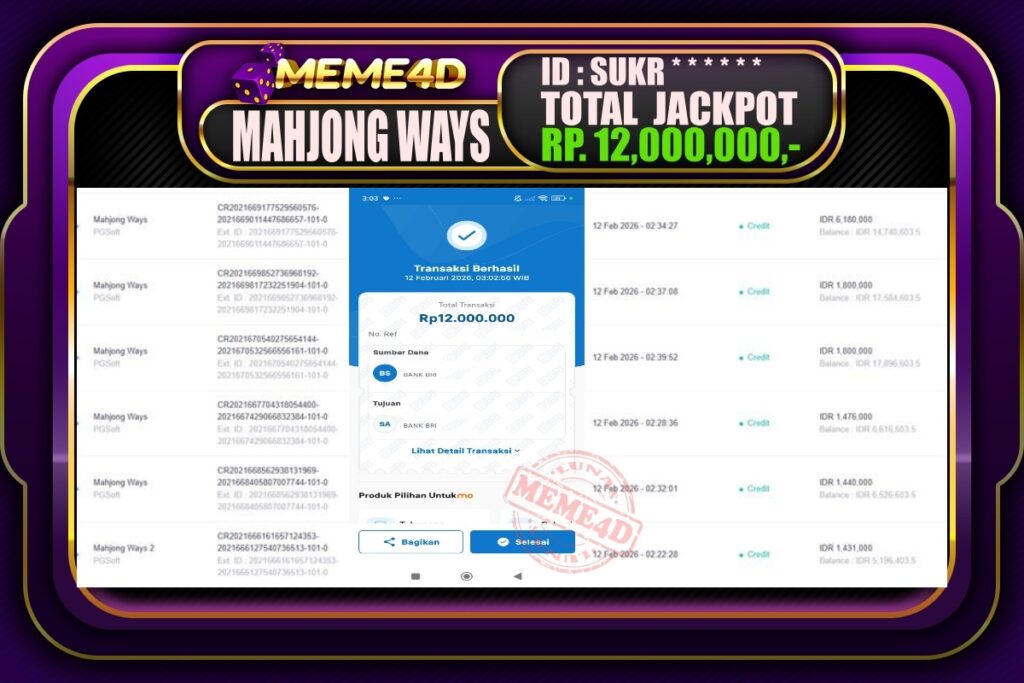 Bukti Jp MEME4D Slot Online 12 February 2026 – MEME4D merupakan situs terpercaya yang selalu membayar berapapun kemenangan semua pemain nya.