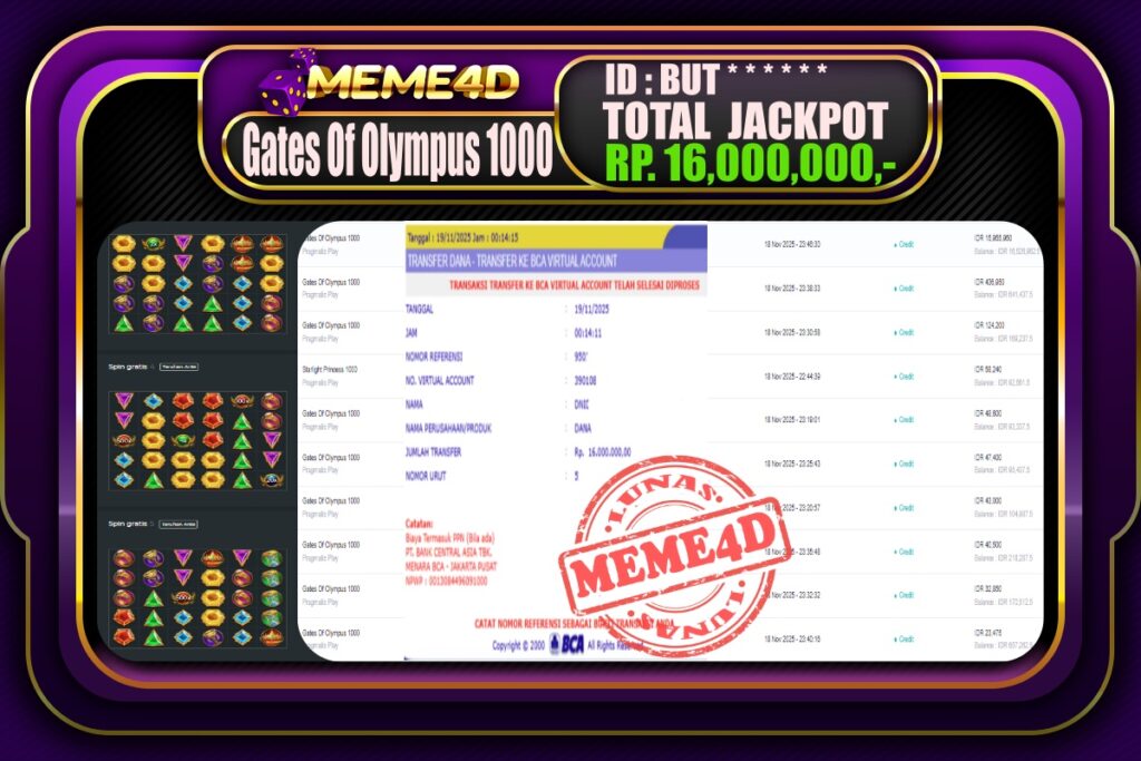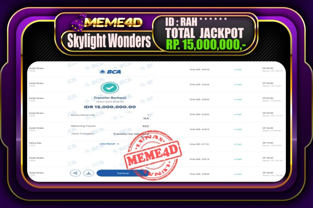 Bukti Jp MEME4D Slot Online 19 November 2025- MEME 4D merupakan situs terpercaya yang selalu membayar berapapun kemenangan semua pemain nya.